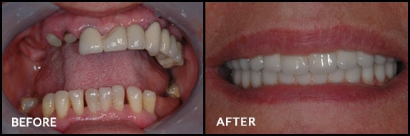 Implant-retained fixed bridges are used as a more permanent or 'fixed' replacement of all teeth. In this case, between 4-6 implants are placed in the upper and/or lower jaws, which will support the full bridge. You will not have to worry about your fixed bridges coming out because only we can remove the prosthesis for maintenance and cleaning.