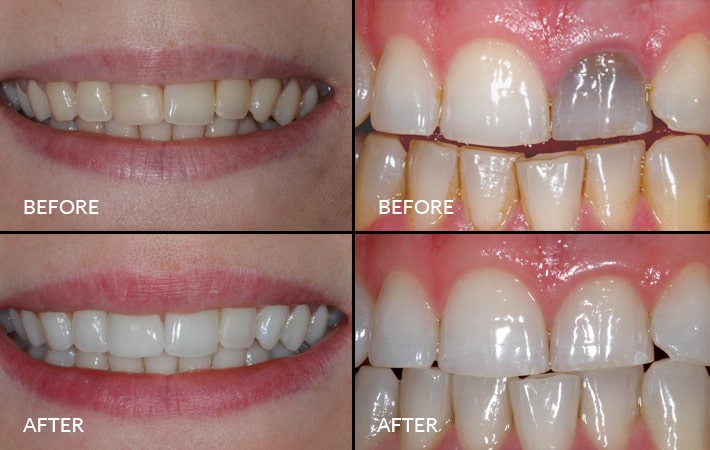 One or two shades of the whitening process can generally be achieved through bleaching. In more severe cases of discolouration, other treatments such as placing crowns or veneers will be recommended to achieve an even colour across all your teeth.